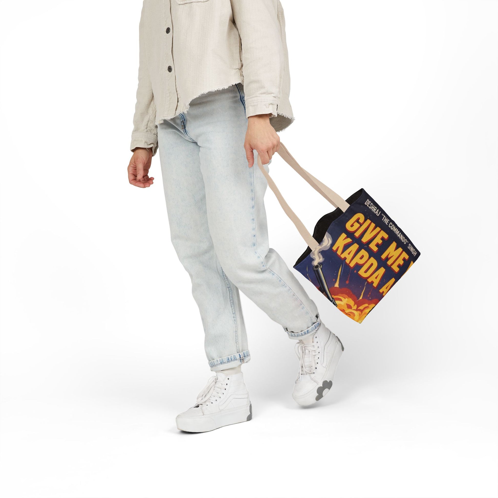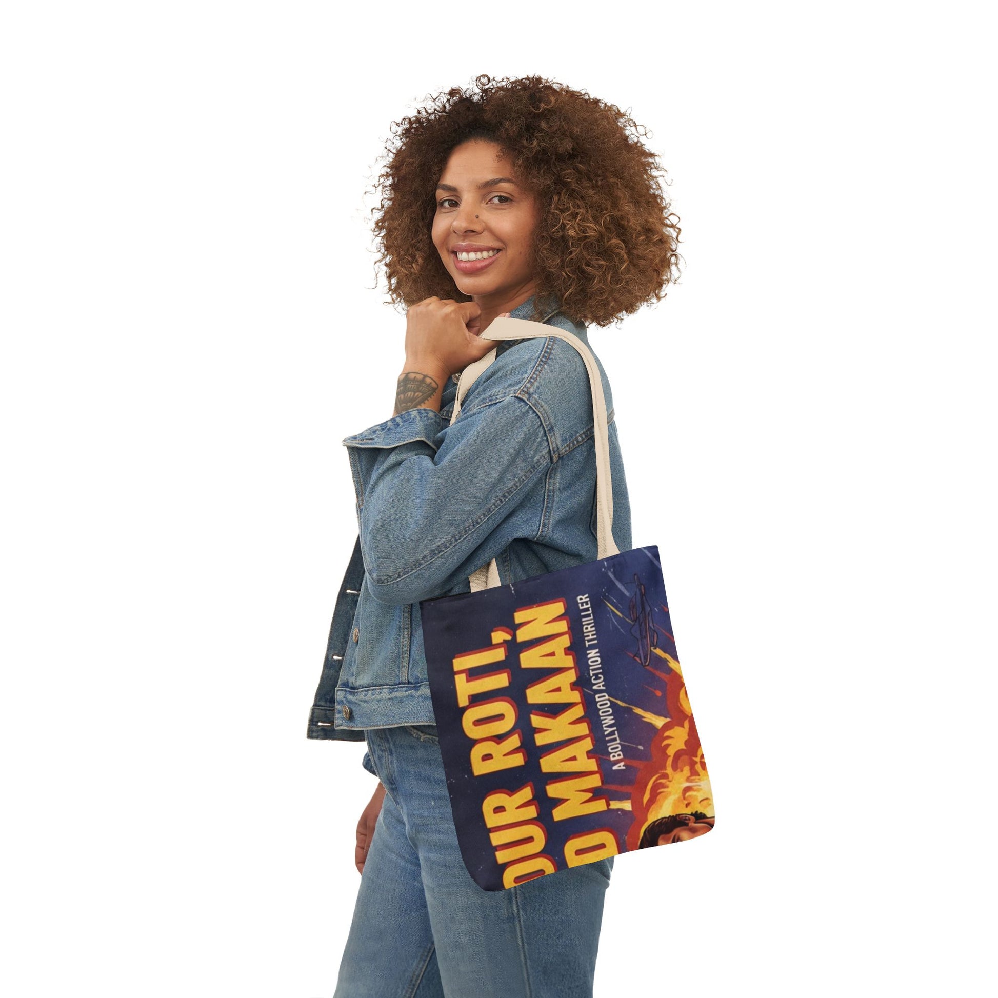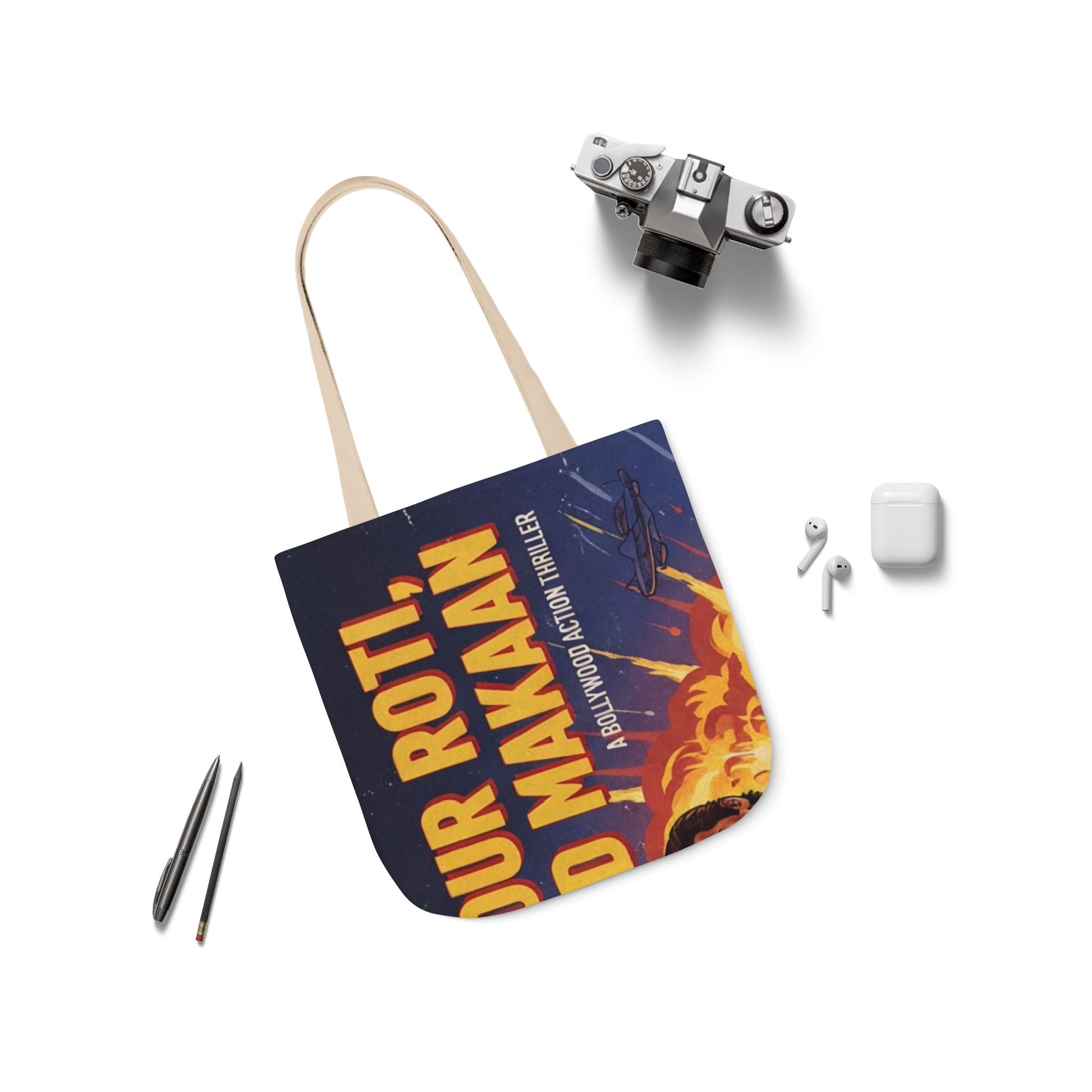 AOP Roti Kapda Makaan Canvas Tote Bag with 5-Color Straps, Eco-friendly Grocery Bag, Reusable Shopping Tote, Chic Beach Bag, Boho Style Bag